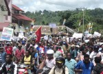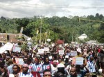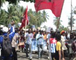 West Papua National solidarity for Obama (SONABPO) called the peaceful demonstration held on November 8 in Manokwari, to coincide with the visit to Indonesia of Obama. After two separate protest marches combined, the crowd grew to at least 6200 people. Despite fears of unrestrained Indonesian security forces in attendance, events were largely peaceful, with the large crowd outside Sanggeng stadium listening to hours of speeches demanding both Indonesia and the US to take responsibility for their role in the systemic brutality of the Indonesian colonial occupation.