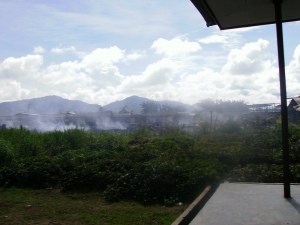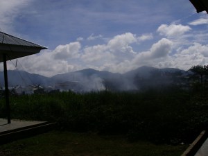 Until now, several houses (in DOgiyagi) have been burned down by police. About 2,000 residents fled to the forests because of last night, there are 7 companies of police were brought in from Nabire last nigh at 3.00 AM.