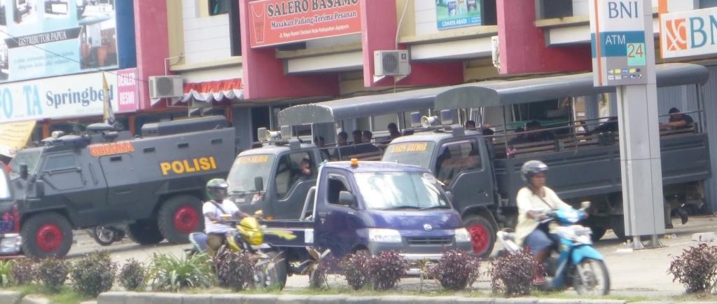 Figure 2 .Police truck surveillance and roadblock Sentani – Jayapura city limits.