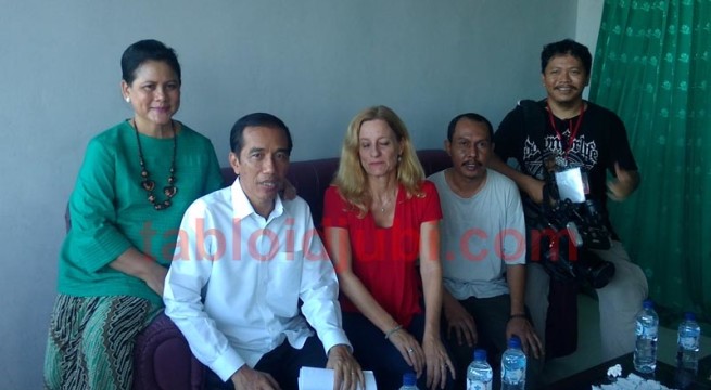 Ibu Iriana, President Jokowi with reporters from AlJazeera Step Vaessen and Bobby Gunawan (far right). Journalist from Jubi, Victor Mambor after doing an exclusive interview in LP Abepura (Photo: Jubi)