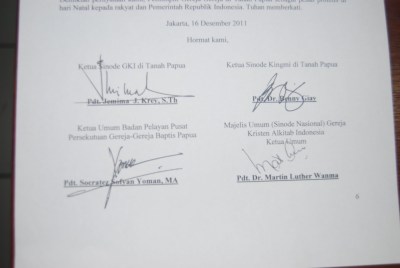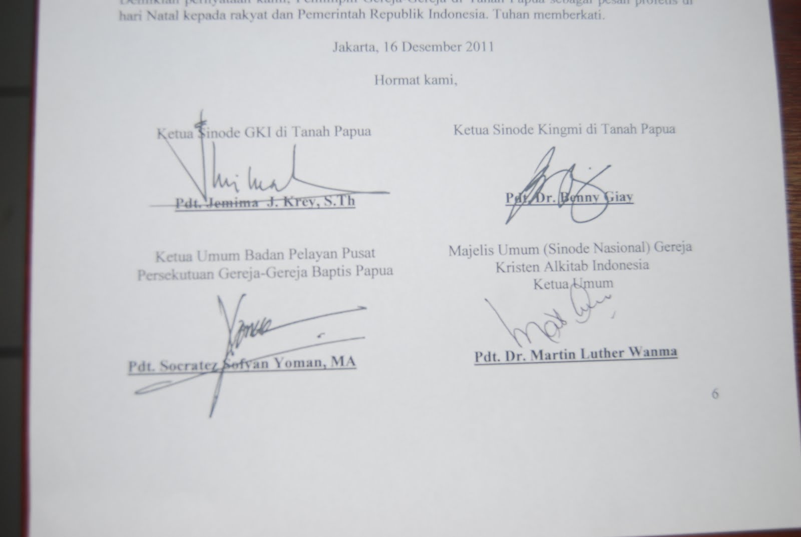(d) The Prophetic Message by Papuan Church Leaders to the President of Indonesia on 16 December 2011, in Cikeas, Jakarta.